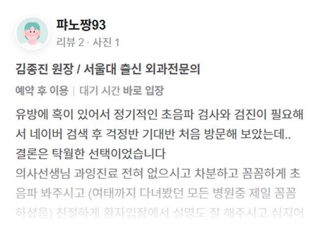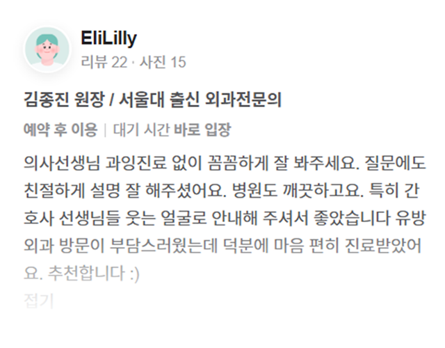 외과전문의 서울대학교병원 유방외과 자문의김종진 원장