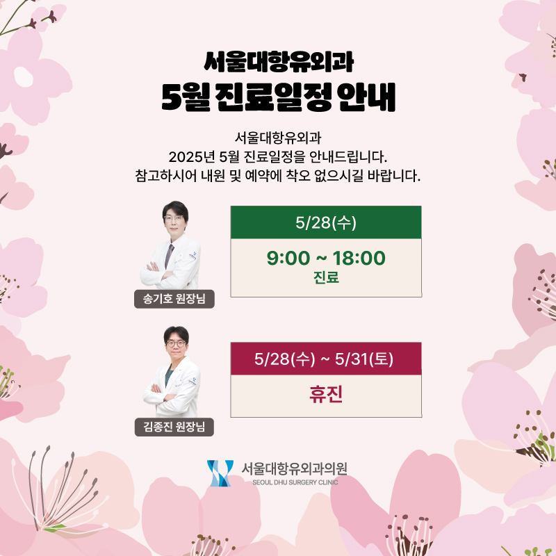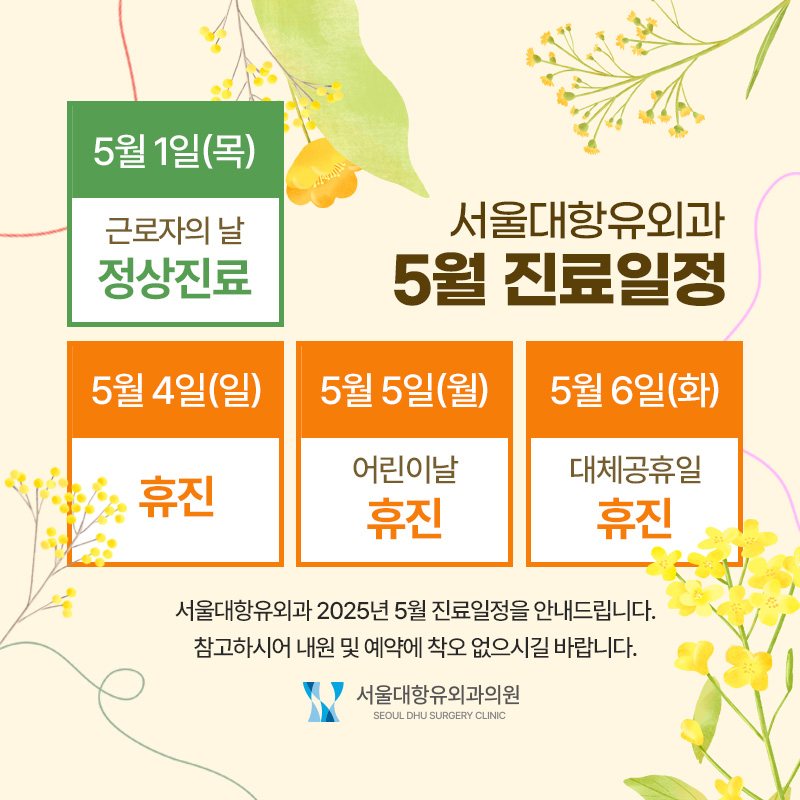 서울대항유외과 5월 진료 안내