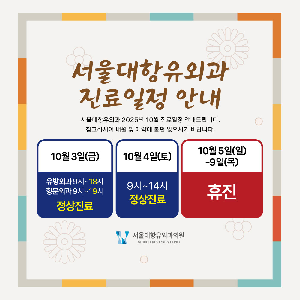 서울대항유외과 10월 진료 일정 안내