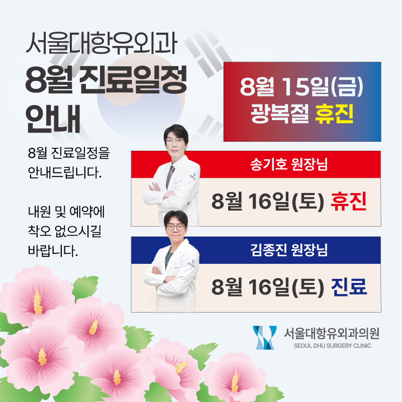 서울대항유외과 8월 진료 일정 안내