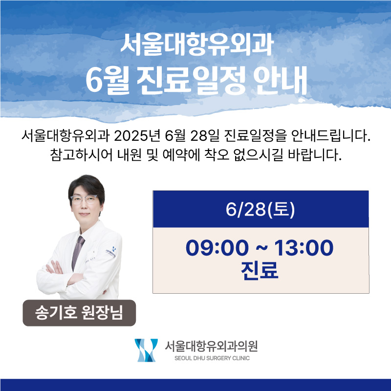 서울대항유외과 6월28일 토요일 진료 일정 안내