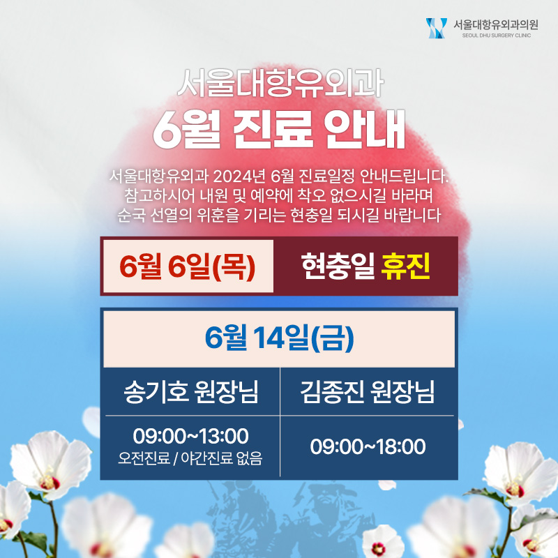 서울대항유외과 6월 진료 일정 안내