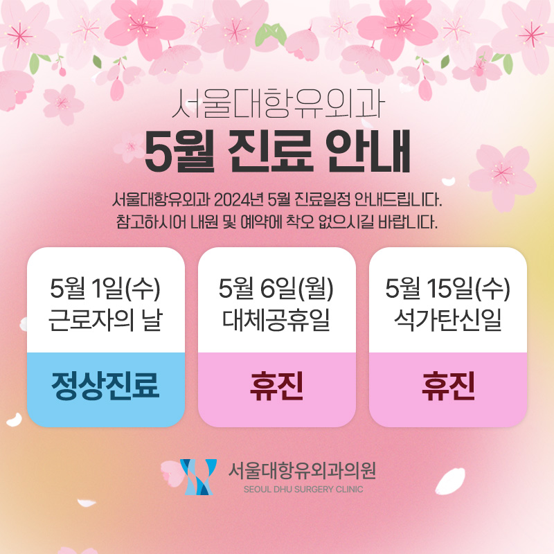 서울대항유외과 5월 진료 일정 안내