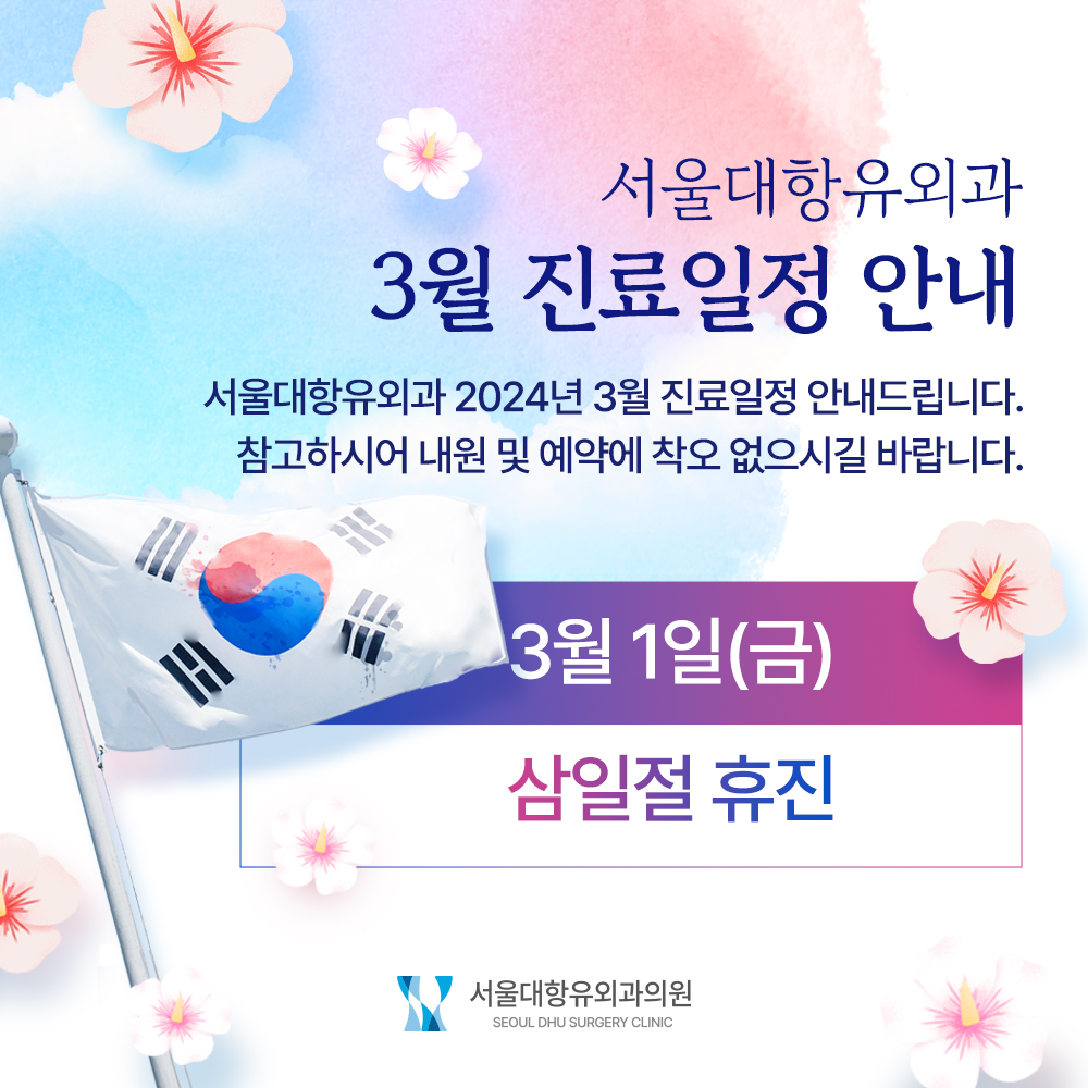 서울대항유외과 3월 진료 일정 안내